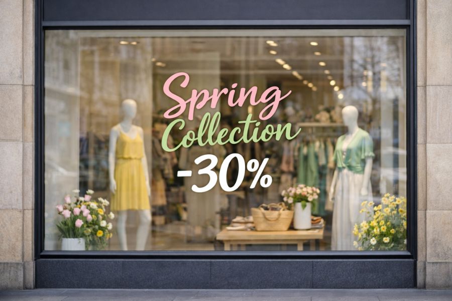 Por eso están ganando protagonismo las soluciones de escaparatismo pensadas para actualizar la imagen de la campaña de forma rápida y sin complicaciones. Entre ellas, los vinilos para cristal, ya sean de fácil aplicación o microperforados, destacan especialmente porque permiten renovar el escaparate con agilidad y sin necesidad de grandes intervenciones en tienda.