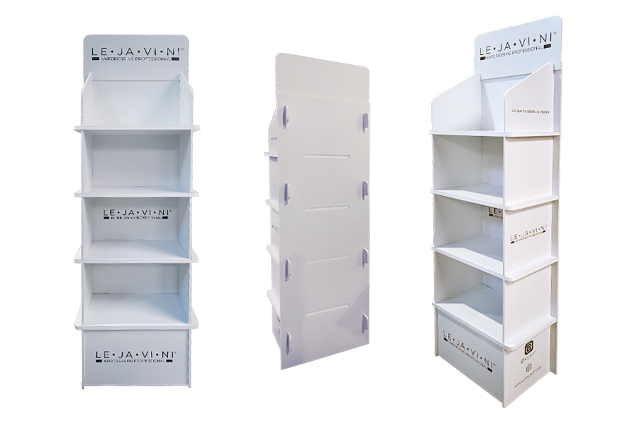 En Sabaté, especialistas en soluciones de impresión ecológica y comunicación visual para punto de venta, nos encanta compartir proyectos que combinan diseño, sostenibilidad y funcionalidad. Uno de nuestros últimos proyectos ha sido la fabricación de un expositor plv con baldas para la marca LE.JA.VI.NI., empresa dedicada a la venta de productos de peluquería profesional. El